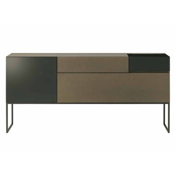 薄型のデザインながらも、内部にはたっぷりとした収納スペースを確保。引き出しや扉の内部には、リビングで散らかりがちな小物から書類、AV機器までスマートに収納できます。細身のスチール製脚部が軽やかな印象を与え、床面を広く見せる効果も。スチール製のブラックの脚部が、全体のデザインを引き締めています。